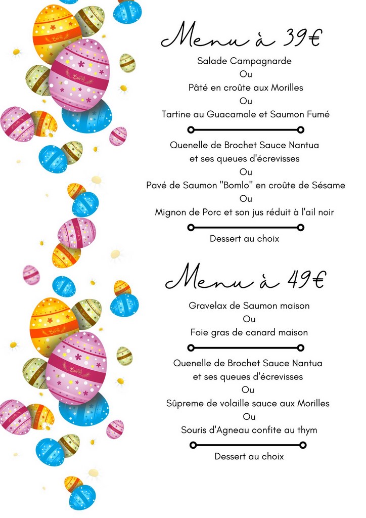 Chers clients, il est possible que lors d'évenements occasionnels (fêtes des mères, pâques etc) nos menus changent afin de vous convenir au mieux,